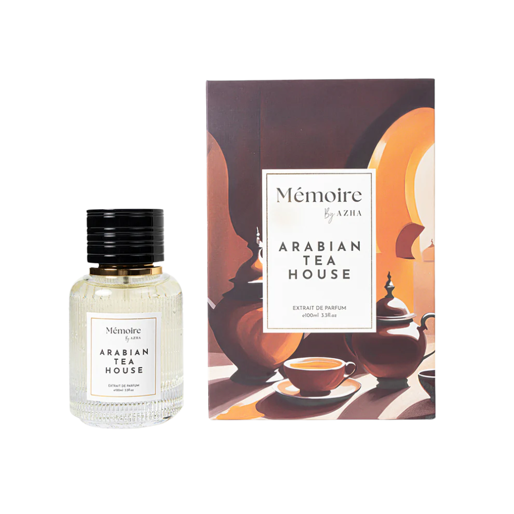 Arabian Tea House Extrait De Parfum, from the Memoire by AZHA Collection, offers a warm and luxurious unisex fragrance experience. It opens with the rich, comforting blend of coffee, date, and saffron, evoking the essence of Arabian hospitality. The heart of the fragrance is a beautiful floral composition of cardamom, rose, and jasmine, adding depth and elegance. The scent settles into a refined base of dry woods and vanilla, leaving a lasting and sophisticated impression. Ideal for those who appreciate bold yet balanced fragrances with a touch of tradition.