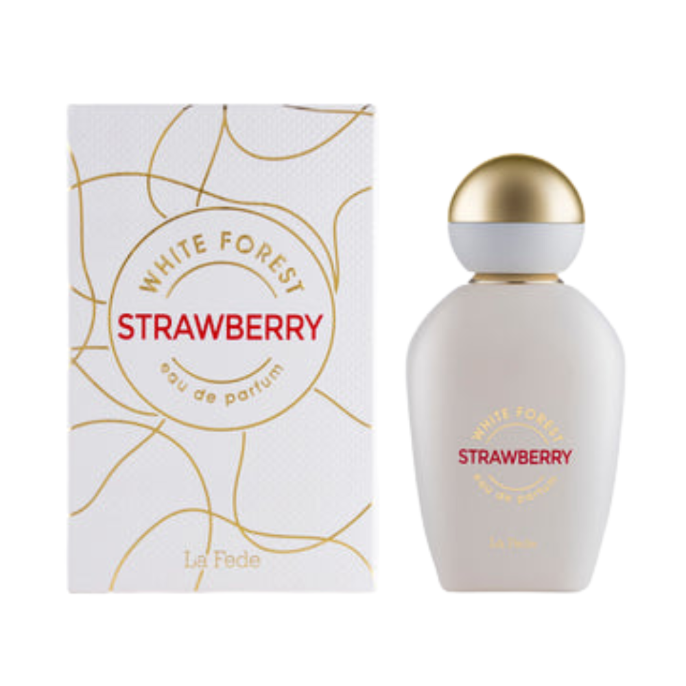 La Fede White Forest Strawberry Eau de Parfum – A delightful gourmand fragrance that captures the essence of sweet indulgence. With luscious strawberry and blackberry as the top notes, this scent opens with a fruity burst reminiscent of freshly baked pastries. At its heart, a floral symphony of jasmine and rose adds elegance, while the warm base of vanilla, amber, and sandalwood creates a rich, creamy finish.