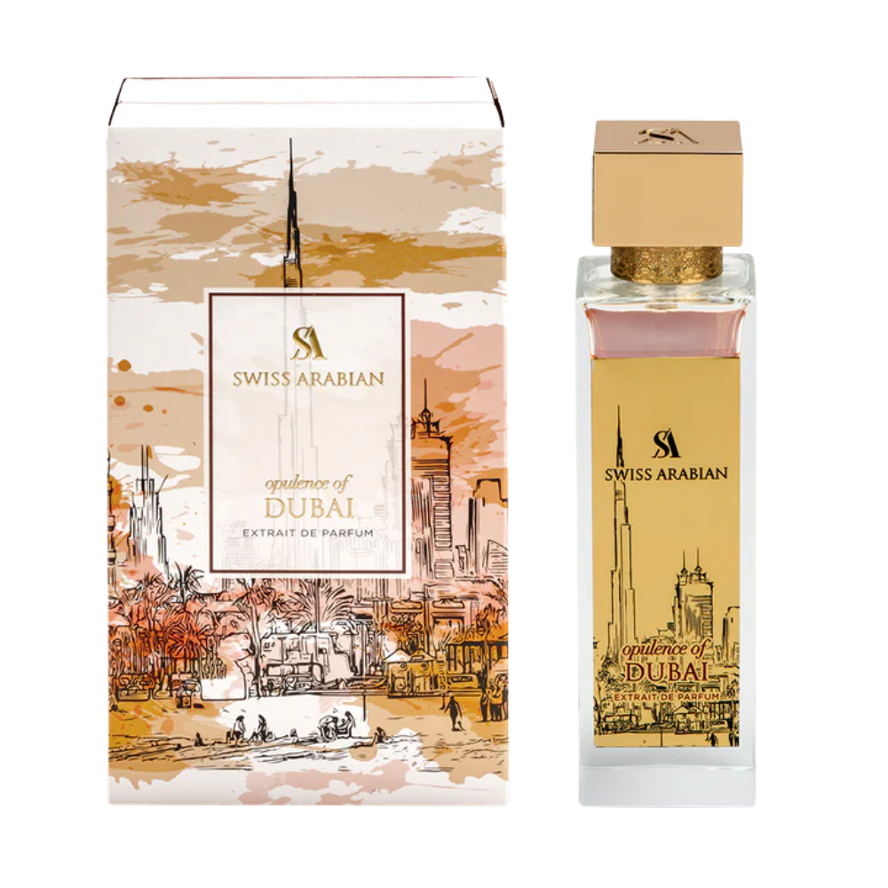 Opulence of Dubai is a premium Extrait De Parfum that captures the unique and dazzling essence of the golden city itself. Its ingredients reflect its far-flung glamour with Italian bergamot and Nigerian ginger to awaken the soul. The Queen of Flowers, the Damascus rose herself, blooms unforgettably, like a fragrant sun. A mouth-watering blend of chocolate and vanilla adds an irresistible temptation, whilst cypriol and vetiver fuse the ancient desert to modern sophistication. Opulence of Dubai is as unforgettable as the city it celebrates.